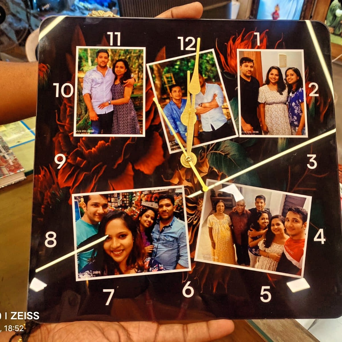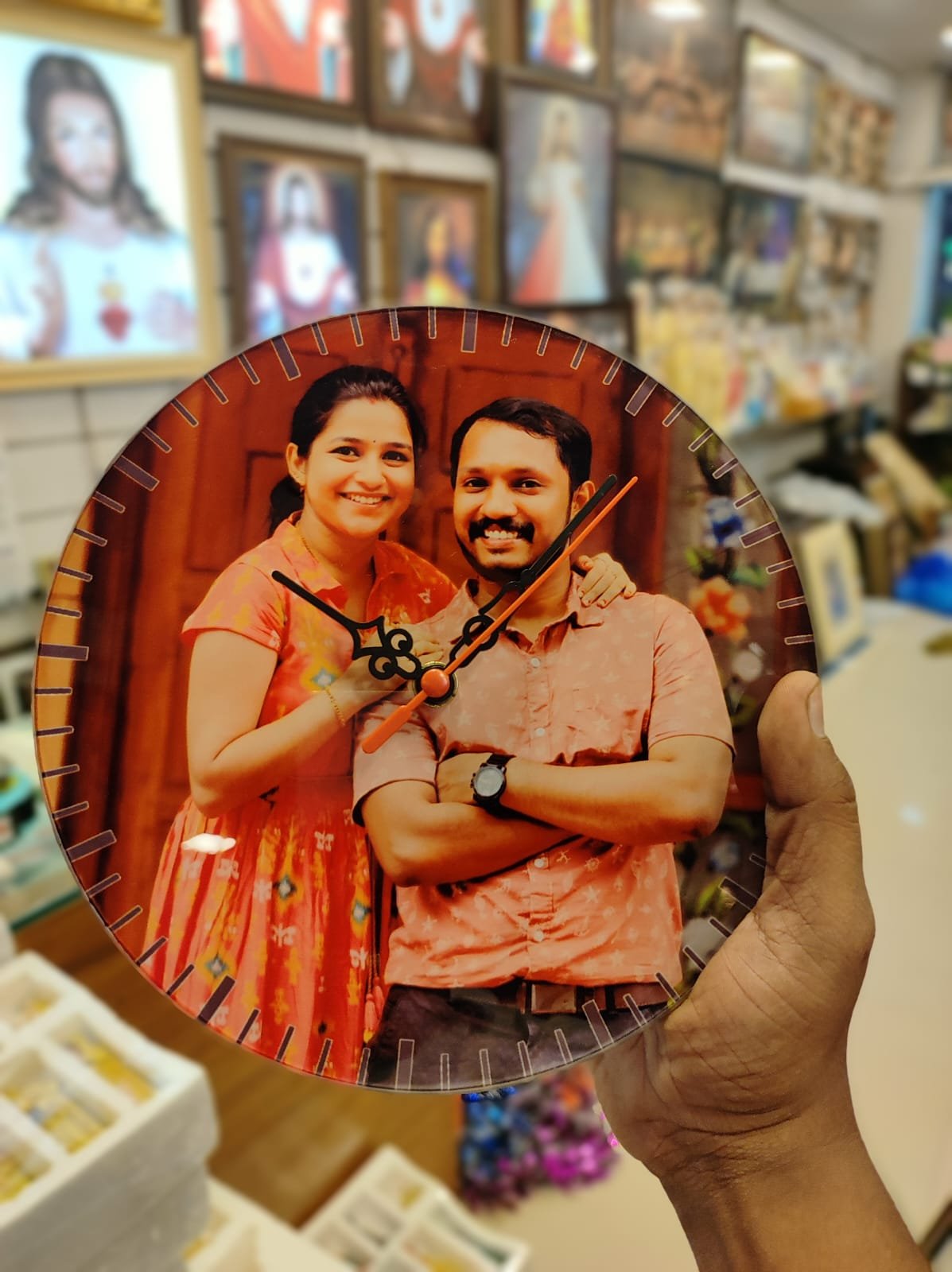 The Clocks are made up of Premium quality High Gloss 3mm Acrylic. Clock comes with a protective coating backside for scratch proof protection. The printings are done directly on Premium Acrylic which is highly durable, glossy and unbreakable. This High Gloss clocks can make your personal space, Home and offices looks very elegant and beautiful. You can customise any photoin this Acrylic clock