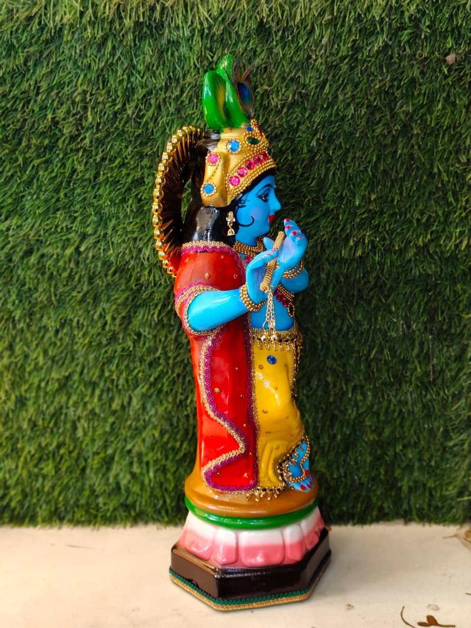 • Exquisite Detailing: From the serene facial expression to the folds of the pitambara (yellow silk), every aspect is crafted with utmost devotion.