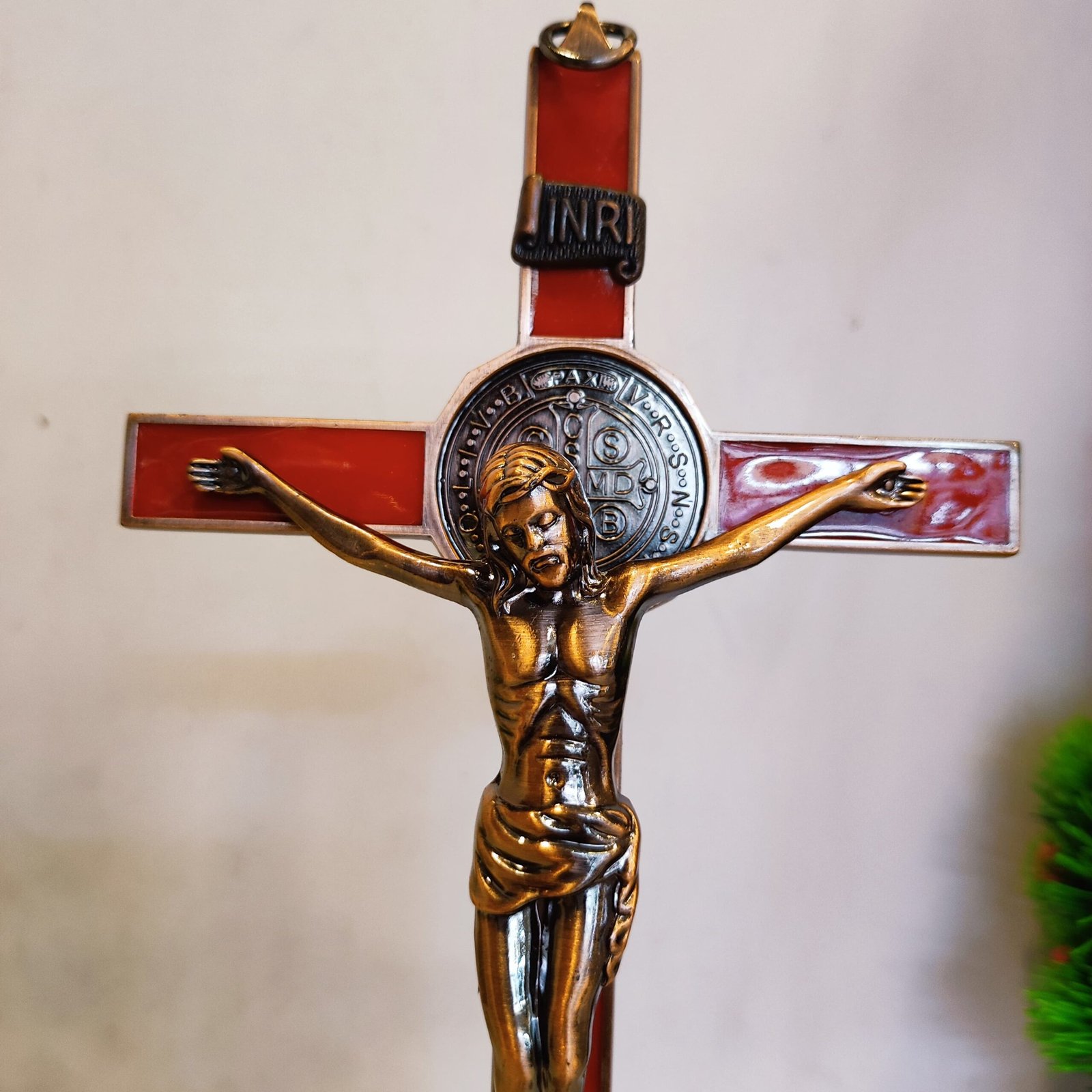 Embolden your faith with this striking Red and Bronze Holy Cross, a symbol of devotion and sacrifice. Crafted from high-quality metal, this bold cross features a vibrant red finish with warm bronze accents, representing the passion and love of Jesus Christ.