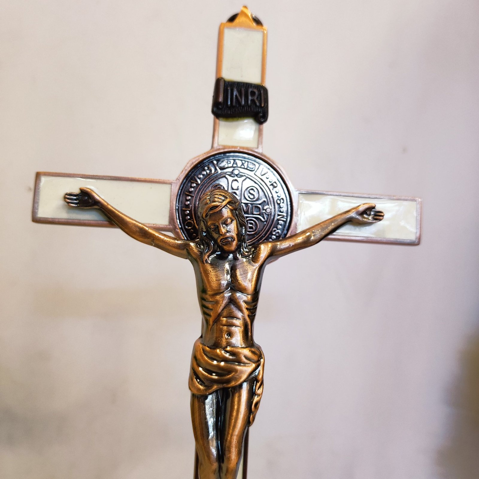 Serene White and Bronze Holy Cross