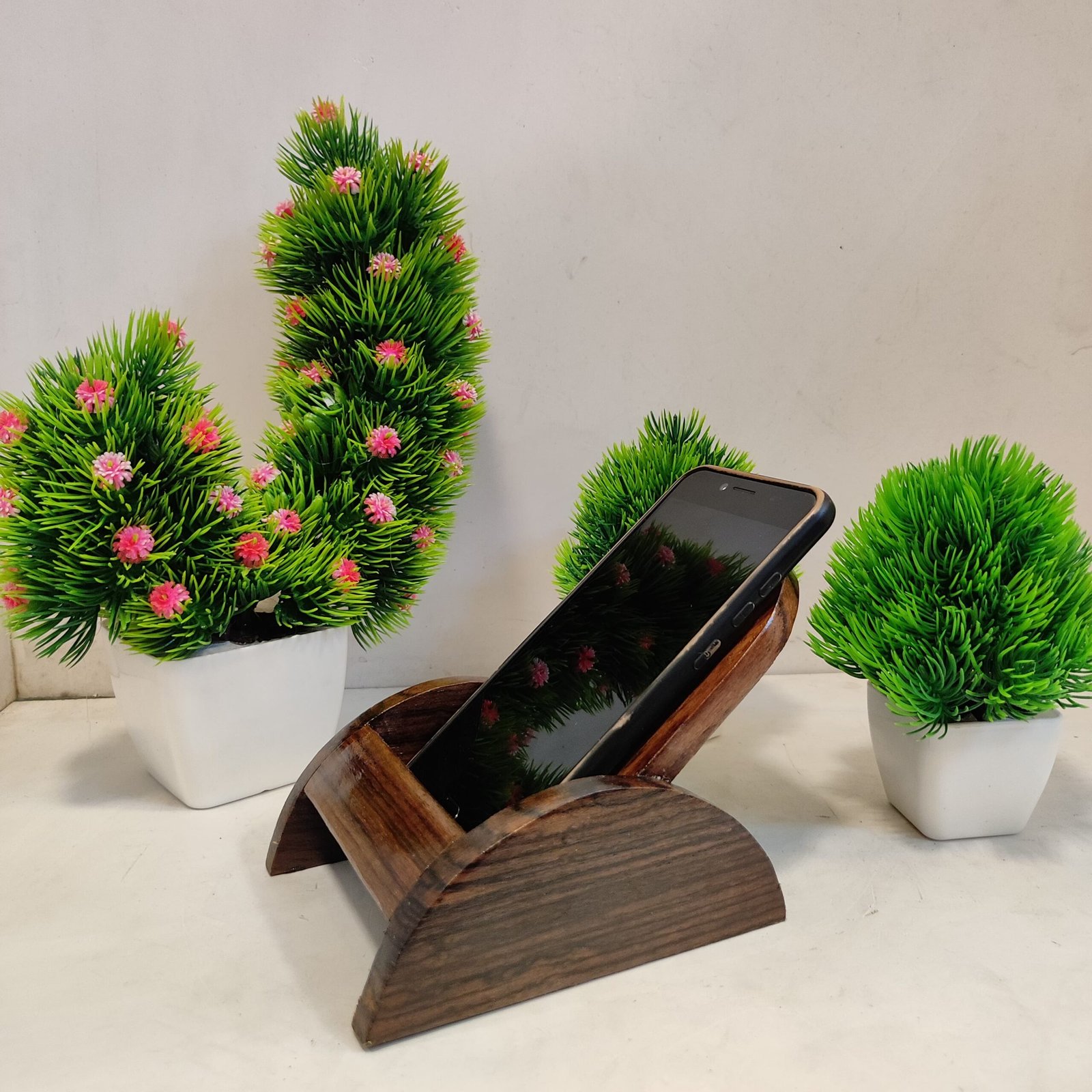 Ideal for both personal use and gifting, this wooden mobile stand is a testament to timeless craftsmanship and practical utility. Embrace the beauty of natural materials with a piece that seamlessly integrates into your daily life, enhancing both style and convenience.
