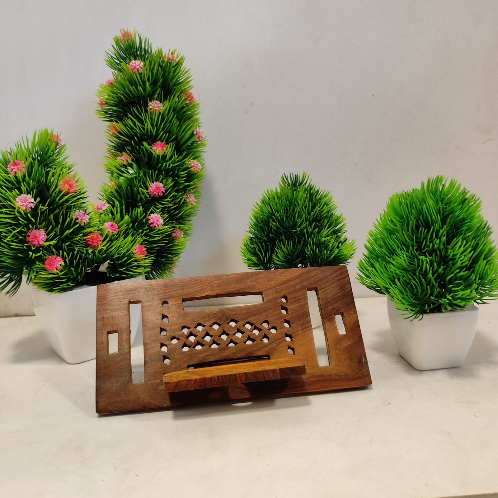 Elevate your mobile phone with this elegantly designed wooden mobile stand. Crafted from fine wood, this stand combines functionality with aesthetic appeal, making it a perfect addition to your workspace or home.
